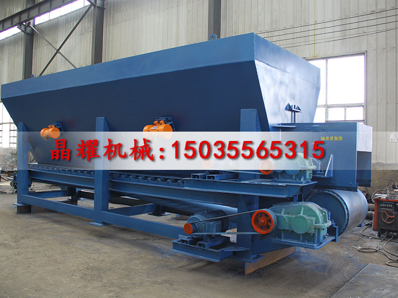 料倉式給料機由機體、料倉座、臺車輪、減速機、調速電機等組成,當電機開動后,經聯軸器、減速機、偏心輪、連桿機構拖動機體在導軌上作直線往復運動,物料均勻的卸到其它設備上,當物料通過槽體上的篩條時,較小料可透過篩條間隙而落下,不經過下道的破碎工序,起到篩分的效果。