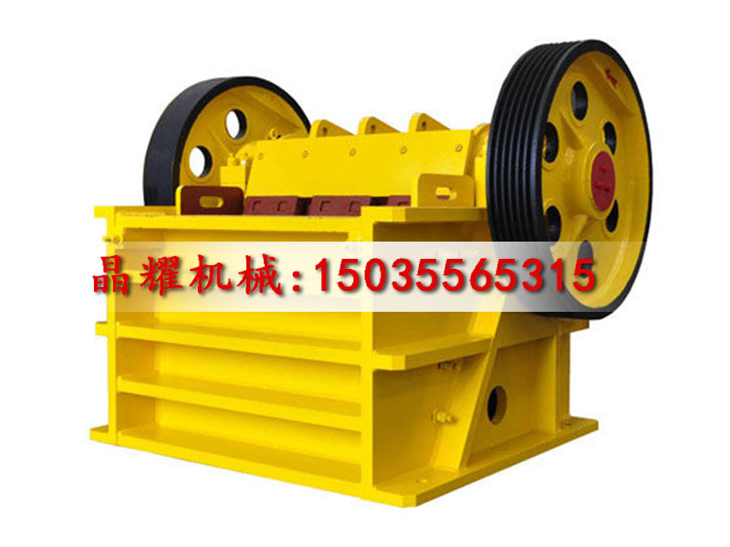顎式破碎機主要由機架、偏心軸、大皮帶輪、飛輪、側護板、肘板、肘板后座、調隙螺桿、復位彈簧、固定顎板與活動顎板等組成。